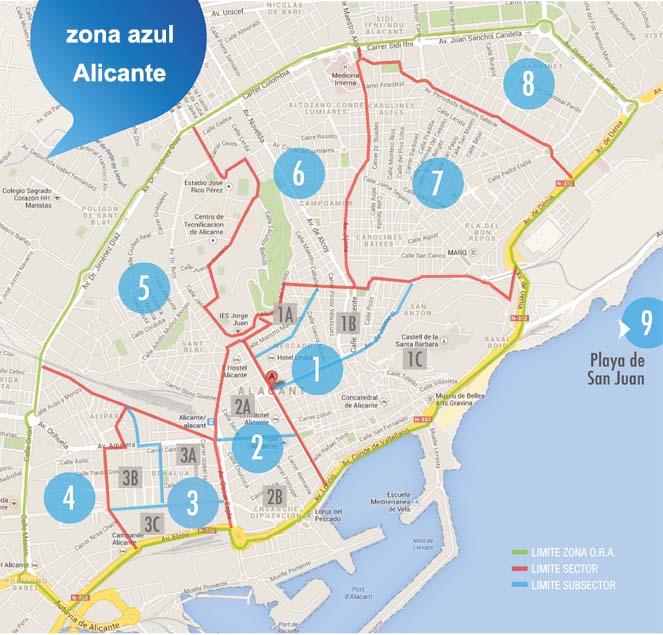 Mapa zona azul de Alicante