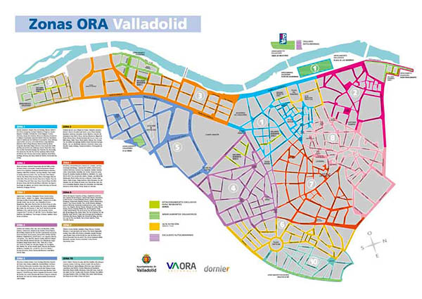 En Valladolid se han distinguido 10 tipos de zonas de aparcamiento regulado y distintos colores: